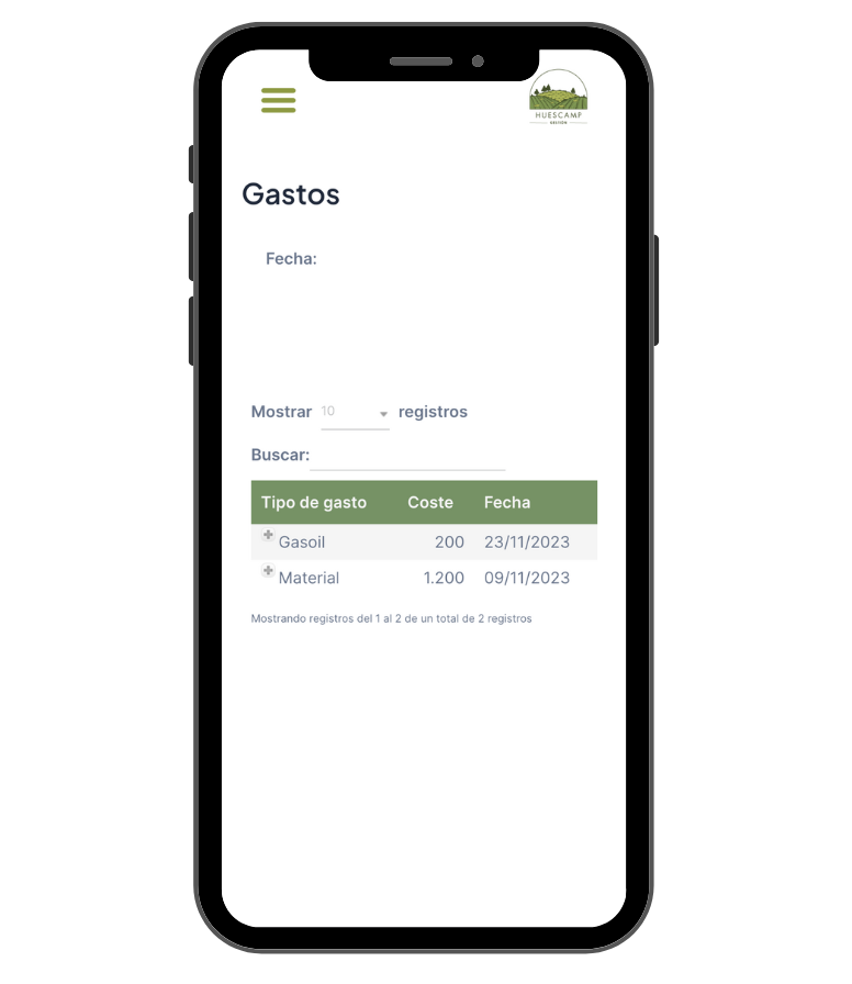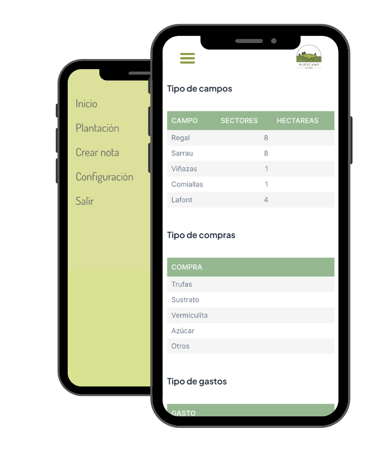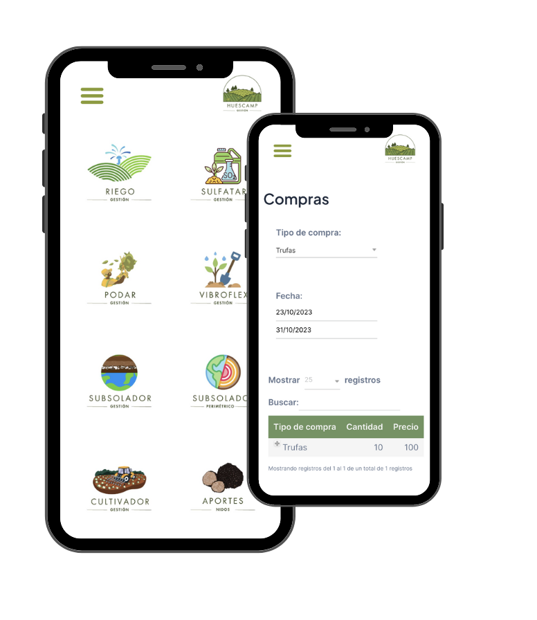 Con Huescamp, podrás controlar el trabajo realizado en tus plantaciones, gestionar los gastos de manera eficiente y controlar las compras necesarias para tu plantación.